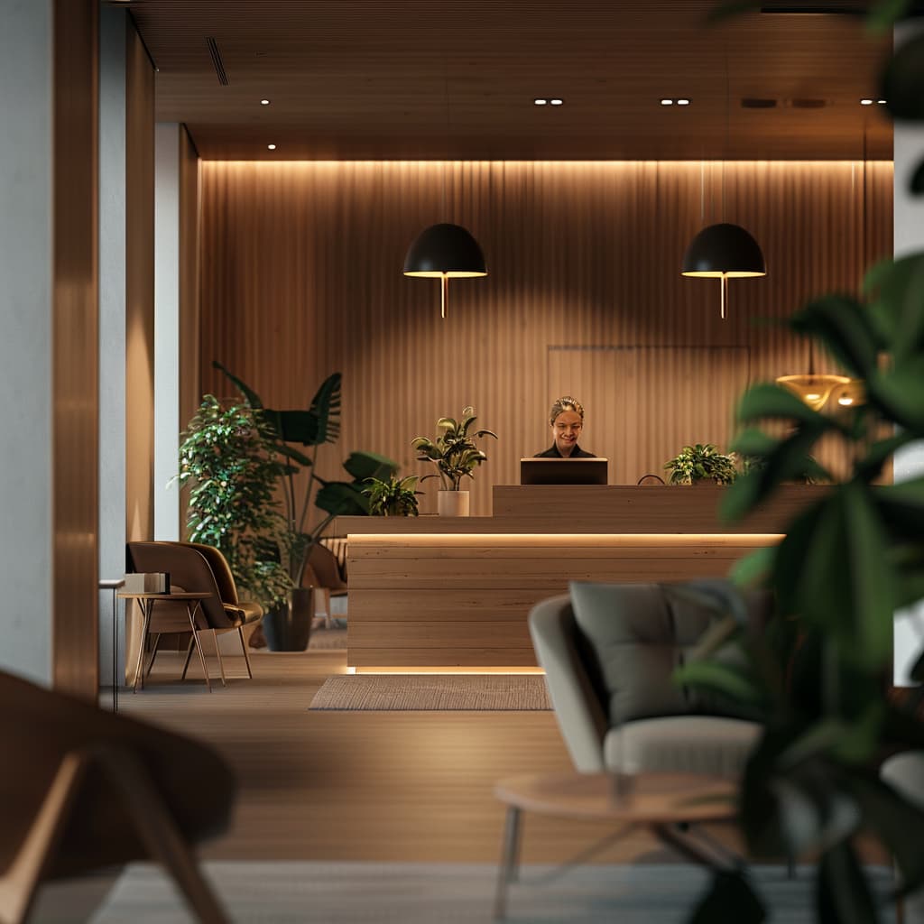 Hotellin aulatila luo välittömän vaikutelman koko hotellikokemuksesta hetkessä sisääntulon jälkeen. Sisustussuunnittelu viestii hotellin identiteettiä ja palvelutasoa tehokkaasti.